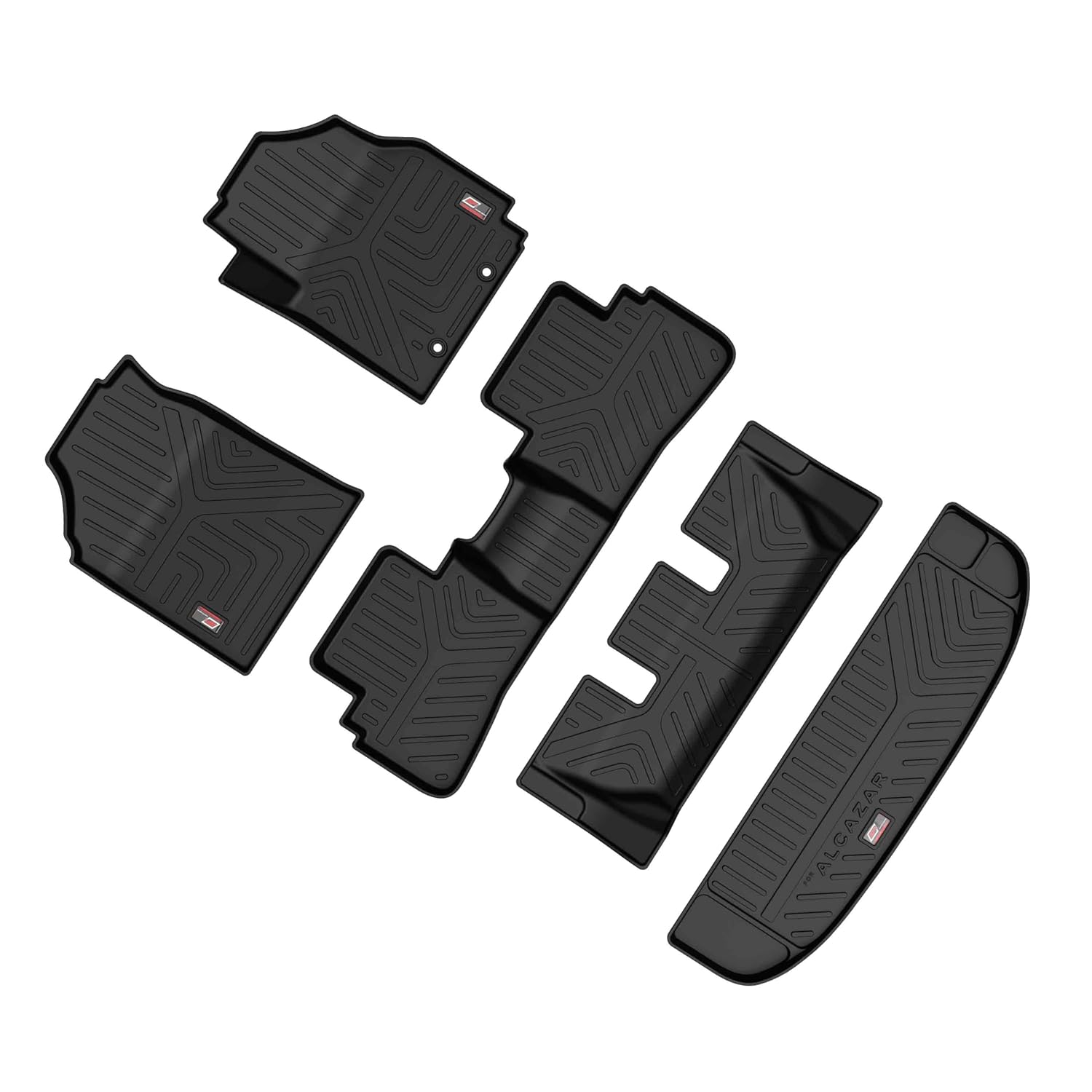 Set of floor mats molded for Alcazar: Front row (2 mats), 2nd row (1 or 2 mats depending on configuration), Last row (1 mat)