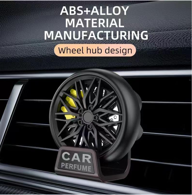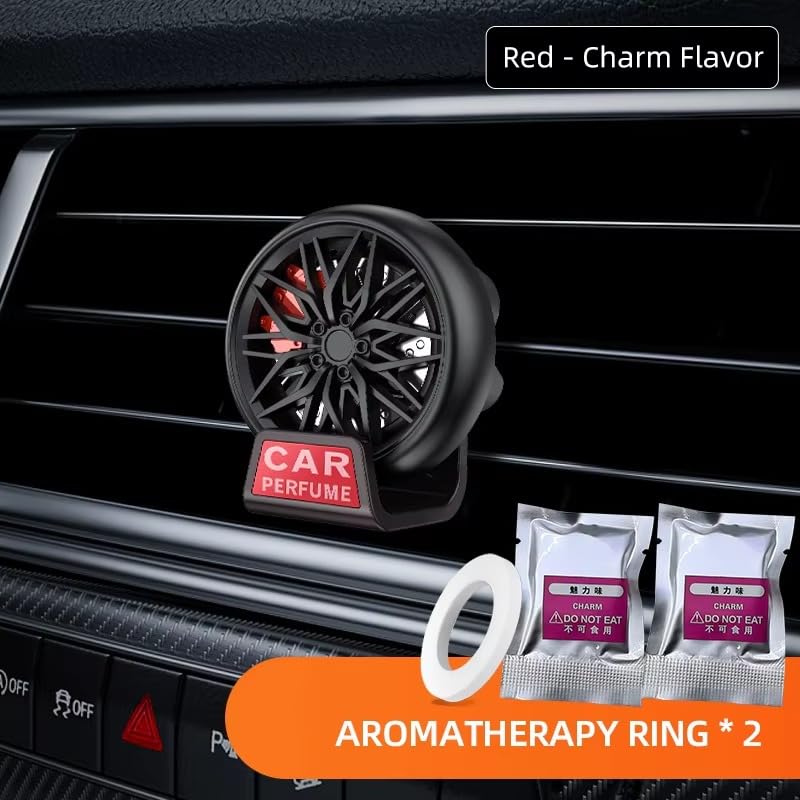 Transform your car's interior ambiance with this sophisticated wheel hub-designed car air freshener. Crafted from premium ABS and alloy materials, this elegant vent-mounted diffuser features a striking 360-degree rotating mechanism that mimics a modern automotive wheel. The Red-charming fragrance combines luxurious notes of bergamot and black tea nut, complemented by warm middle notes of cardamom and cloves, finishing with deep base notes of cypress and sandalwood. The innovative clip-on design fits seamlessly into your car's AC vents, while the stylish black finish adds a touch of sophistication to your vehicle's interior. Each package includes two aromatherapy rings for extended freshness. The unique wheel hub design not only serves as a practical air freshener but also doubles as an attractive automotive accessory that catches the eye while keeping your car's environment pleasantly scented.