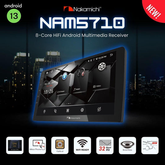 Nakamichi NAM5710 – 9″ Android Car Multimedia Receiver | 4GB RAM + 64GB Storage | Wireless CarPlay & Android Auto | DSP | 360° Camera Support