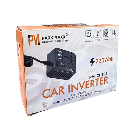 Park Maxx PM-CI-381 220W Car Inverter – DC 12V to AC 220V | Fast Charging with PD & QC 3.0