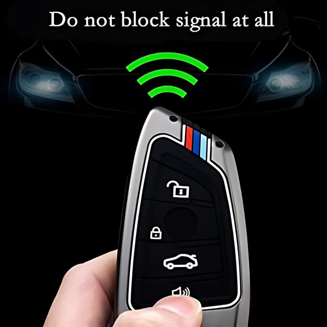 Elevate your Toyota driving experience with this premium metal key cover, specifically designed for Toyota Innova Hycross, Fortuner, Hilux, Innova Crysta, Fortuner Legender, Land Cruiser, and Suzuki Invicto smart keys. The sophisticated three-layer protection system features a zinc alloy upper and lower cover combined with a soft silicone liner that ensures complete protection for your vehicle's smart key. The striking design incorporates signature racing stripes in blue and red, adding a sporty aesthetic to your key fob. The durable zinc alloy construction offers excellent resistance against drops, scratches, and daily wear while maintaining a luxurious feel. The accompanying keychain features a matching design with an ergonomic grip and secure attachment mechanism. The precise cutouts provide easy access to all buttons and functions, ensuring seamless operation. This key cover not only protects your expensive smart key but also adds a touch of sophistication to your everyday carry. Installation is straightforward, and the snug fit ensures your key stays securely protected.