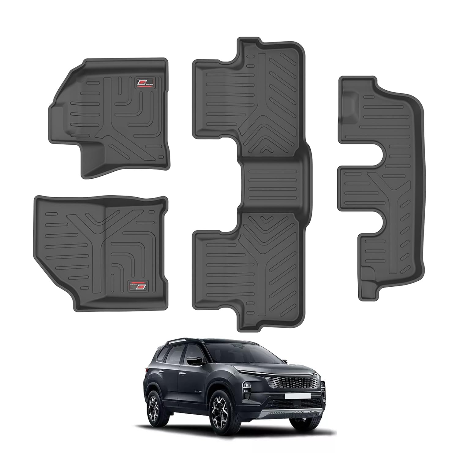 GFX Car Floor Mats for Safari (2023 Onwards) Captain Seat 6 Seater Automatic | Waterproof | Anti-Slip | All-Weather | Stylish Protection | Sleek Black