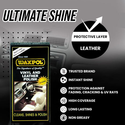 Waxpol Vinyl & Leather Polish 125 ml For Cleaning, Shine & Protection for Car & Bike Seats, Dashboard, Leather Goods ,Jacket, Handbag, Wallet, Belt