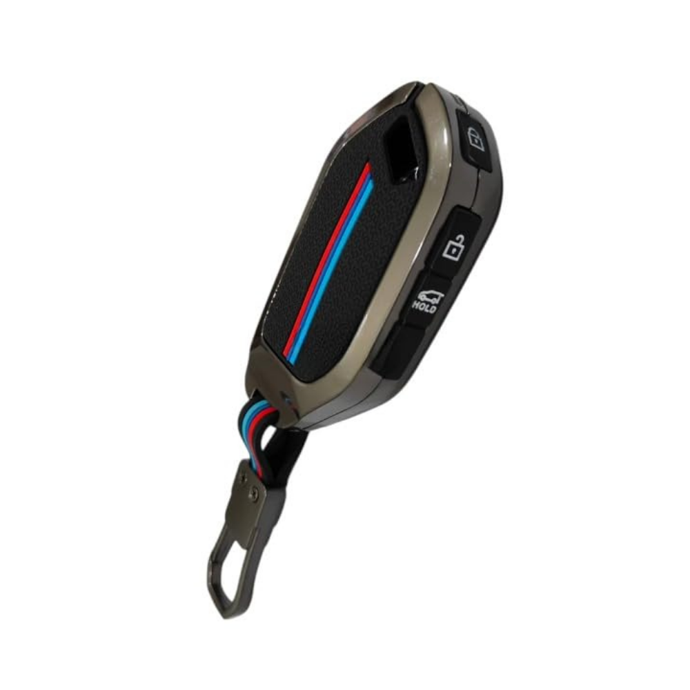Premium Zinc Alloy Key Cover with Silicone Shell for Kia Seltos | Sonet 2023-2024 | Carens | 3-Button Remote Key