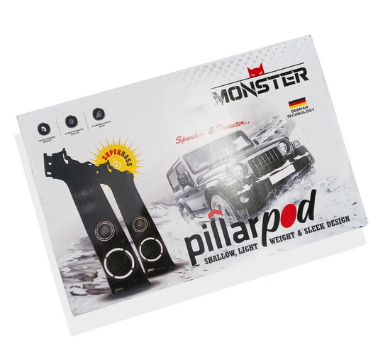 Pillar Pod & Tweeter Set for Mahindra Thar (2020 Onwards) – Black | Powerful Clear Sound
