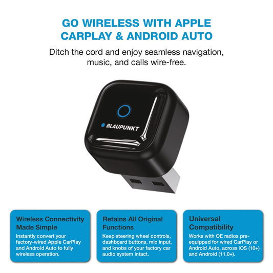 Blaupunkt BP W2WL M4 | Wireless Car Receiver, Converts Wired Auto Android & CarPlay to Wireless